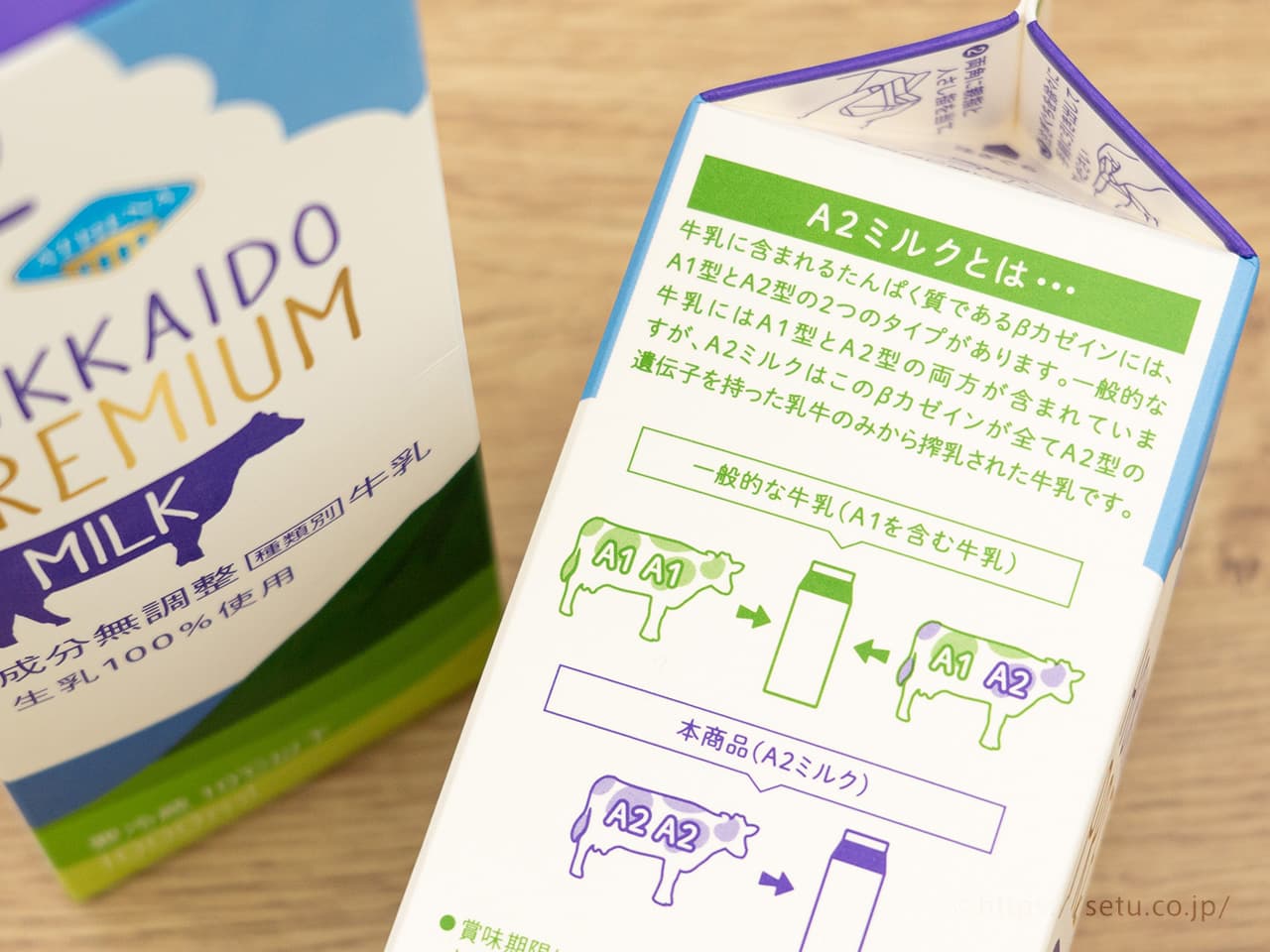 牛乳に含まれるたんぱく質にはA1型とA2型の2種類があるそうで、A1・A2どちらも含んでいるのが一般的な牛乳、でA2ミルクというのは”A2型タンパク質のみ”の遺伝子をもつ乳牛からしぼった牛乳ということみたいです。