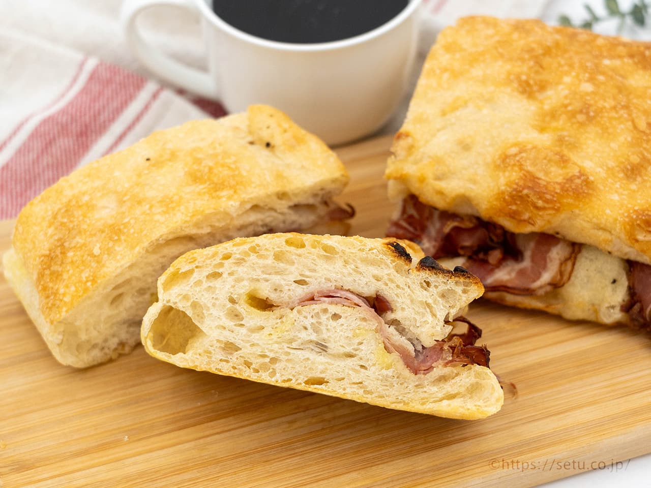 コストコで人気のパン「チャバタ」に、スライスベーコンを挟んで焼き上げた惣菜パンが登場しました!