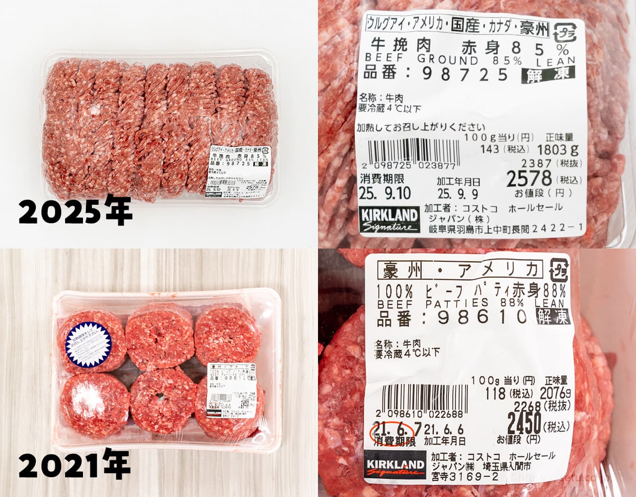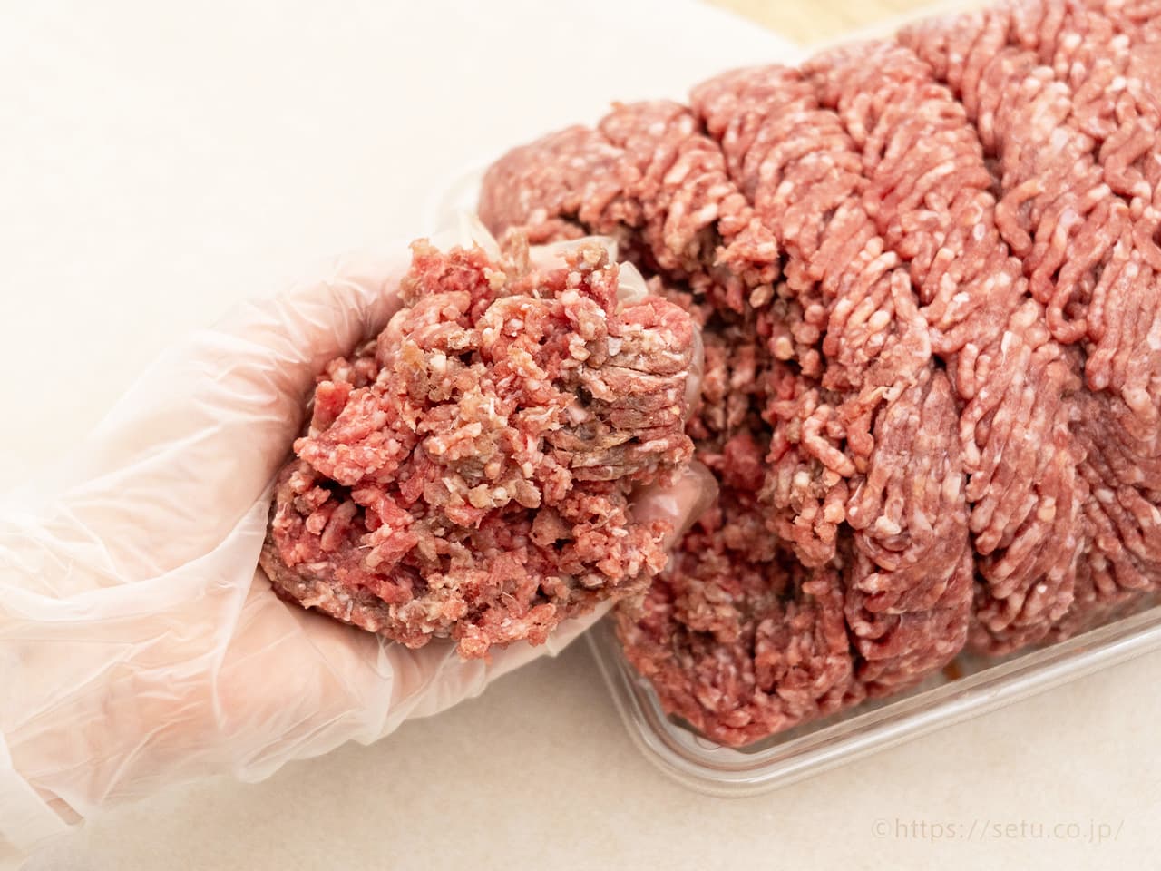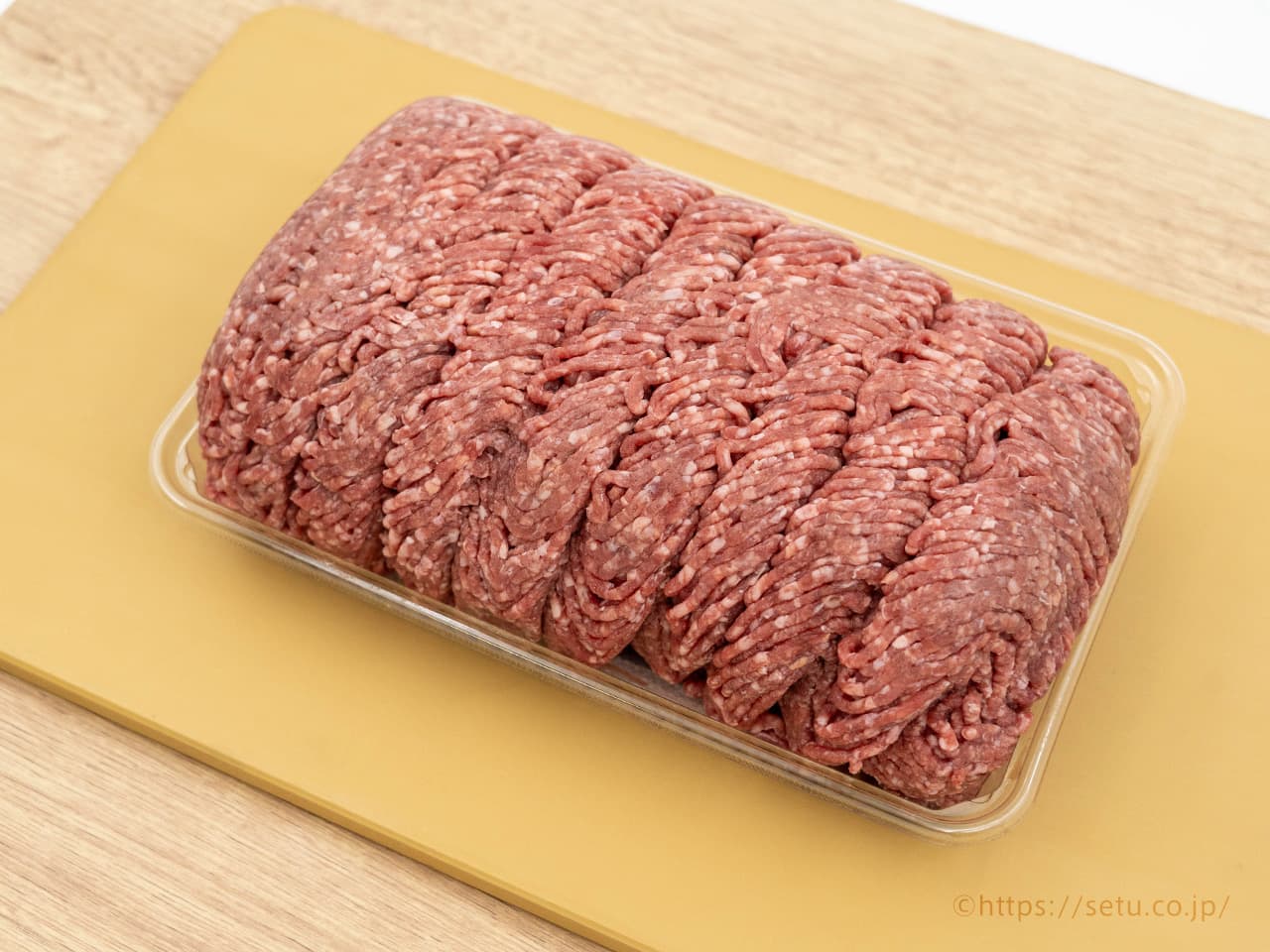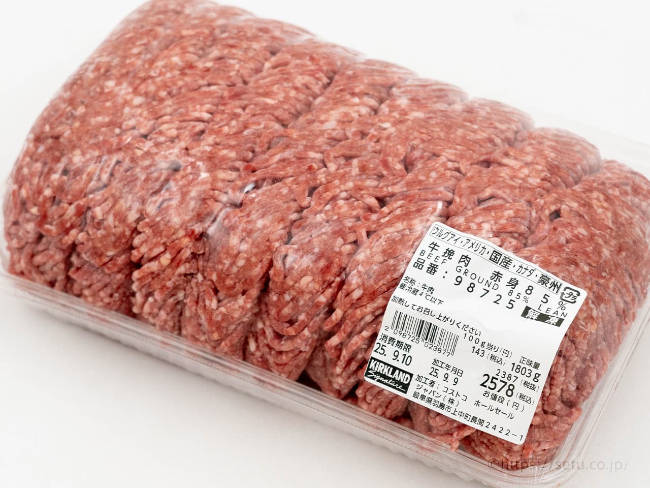 コストコの牛挽肉です!赤身85%・脂身15%のバランスになっており、脂っぽさは控えめです。