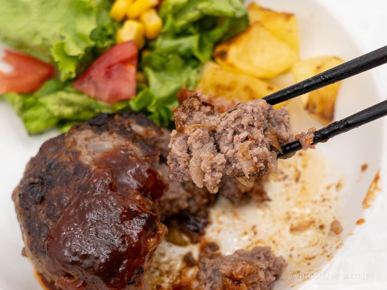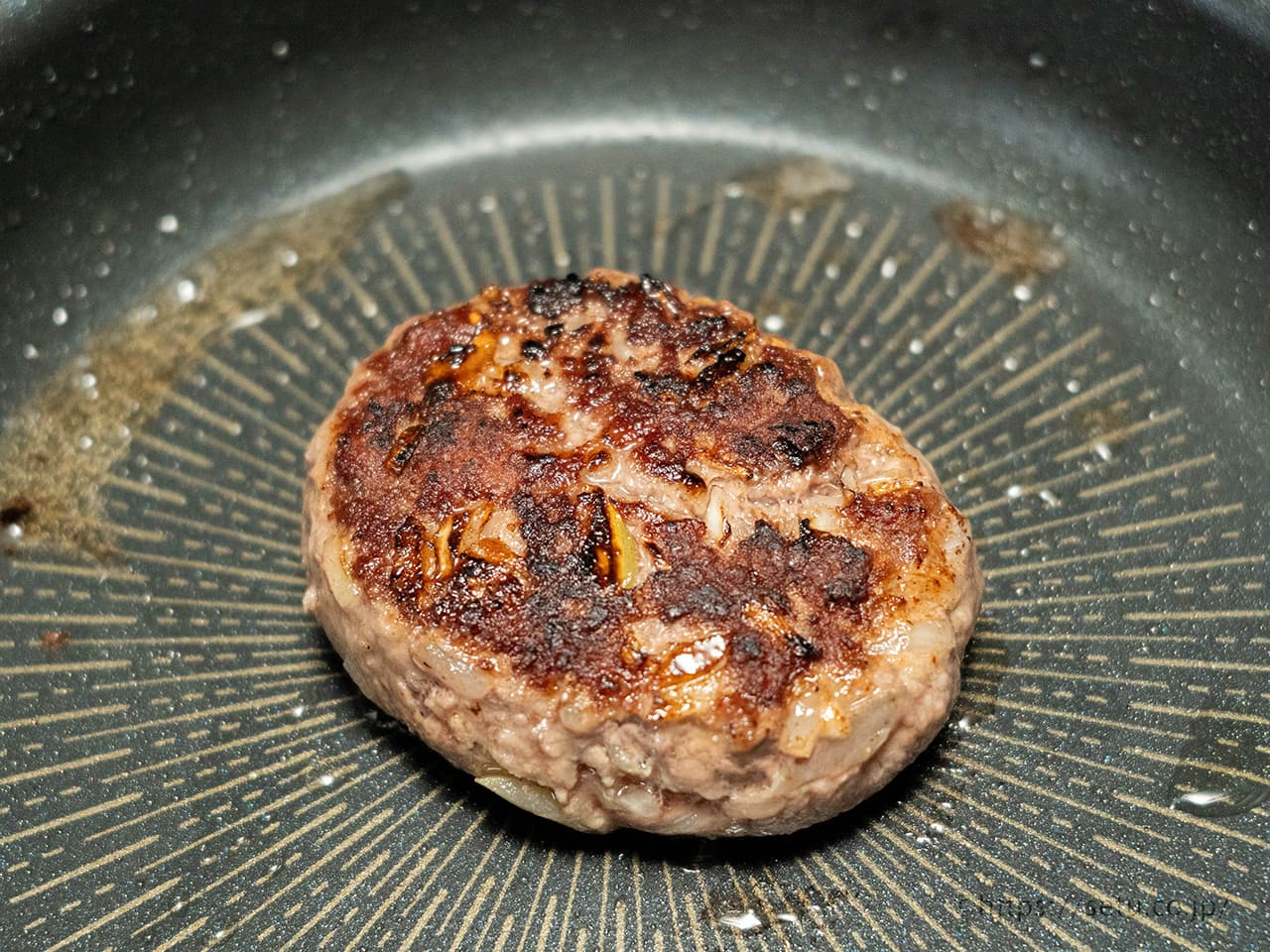 つなぎが入っていないので、フライパンでさっと焼くだけで100%牛肉のしっかりしたハンバーグが完成しますよー👍