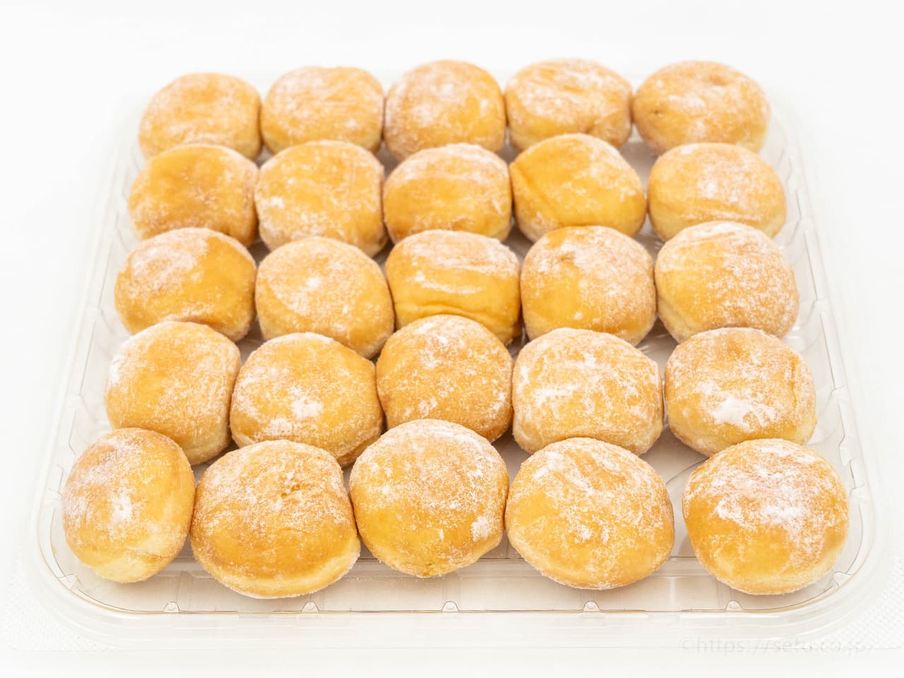 直径5cmほどの手のひらサイズのベニエが25個入っています。2口くらいで食べられるのでパクパク口に運んじゃう罪な大きさですよ(笑)