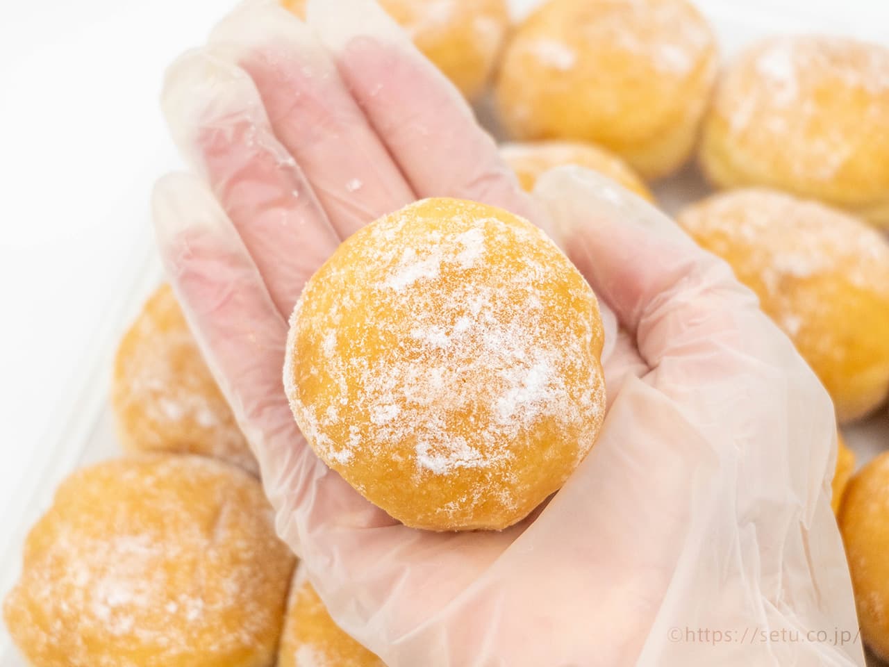 粉糖が舌に触れるので、生地だけでもほどよい甘みがあってシンプルドーナツのような感じもあって美味しい♪