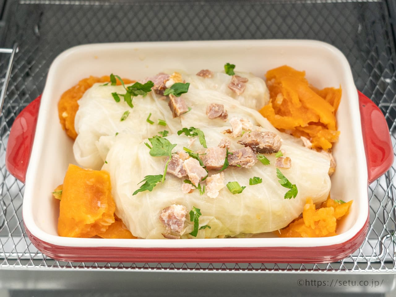 ロールキャベツは未加熱なので、中心部まで火が通してくださいね。