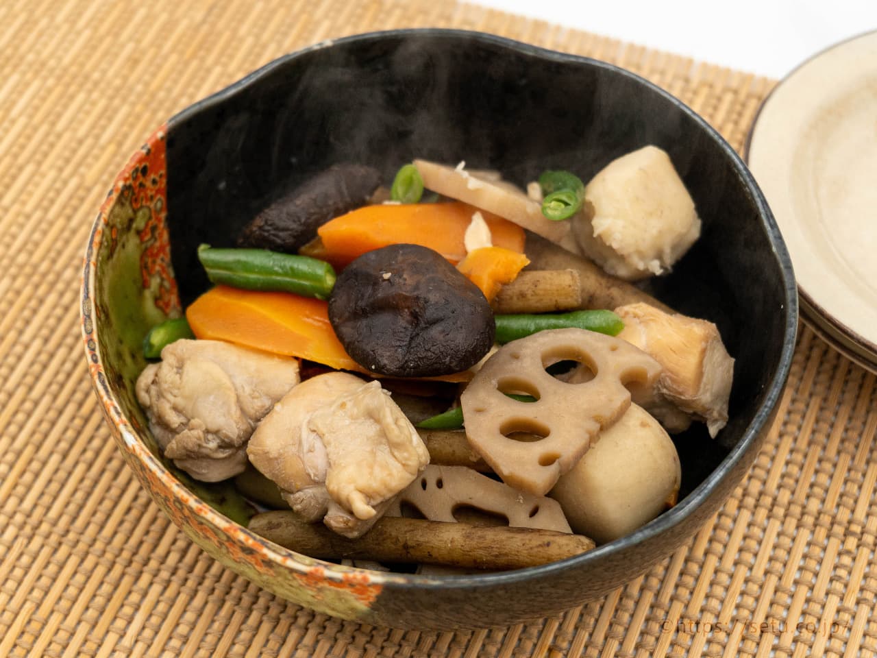 筑前煮は鶏肉と根菜を甘辛い出汁で煮含めた福岡発祥の郷土料理です。