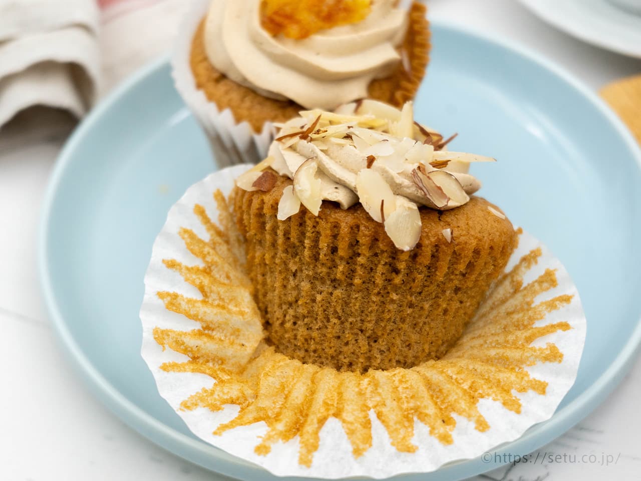 コストコの新作スイーツ!アールグレイ風味のクリームをトッピングした、紅茶葉を練りこんだカップケーキです。