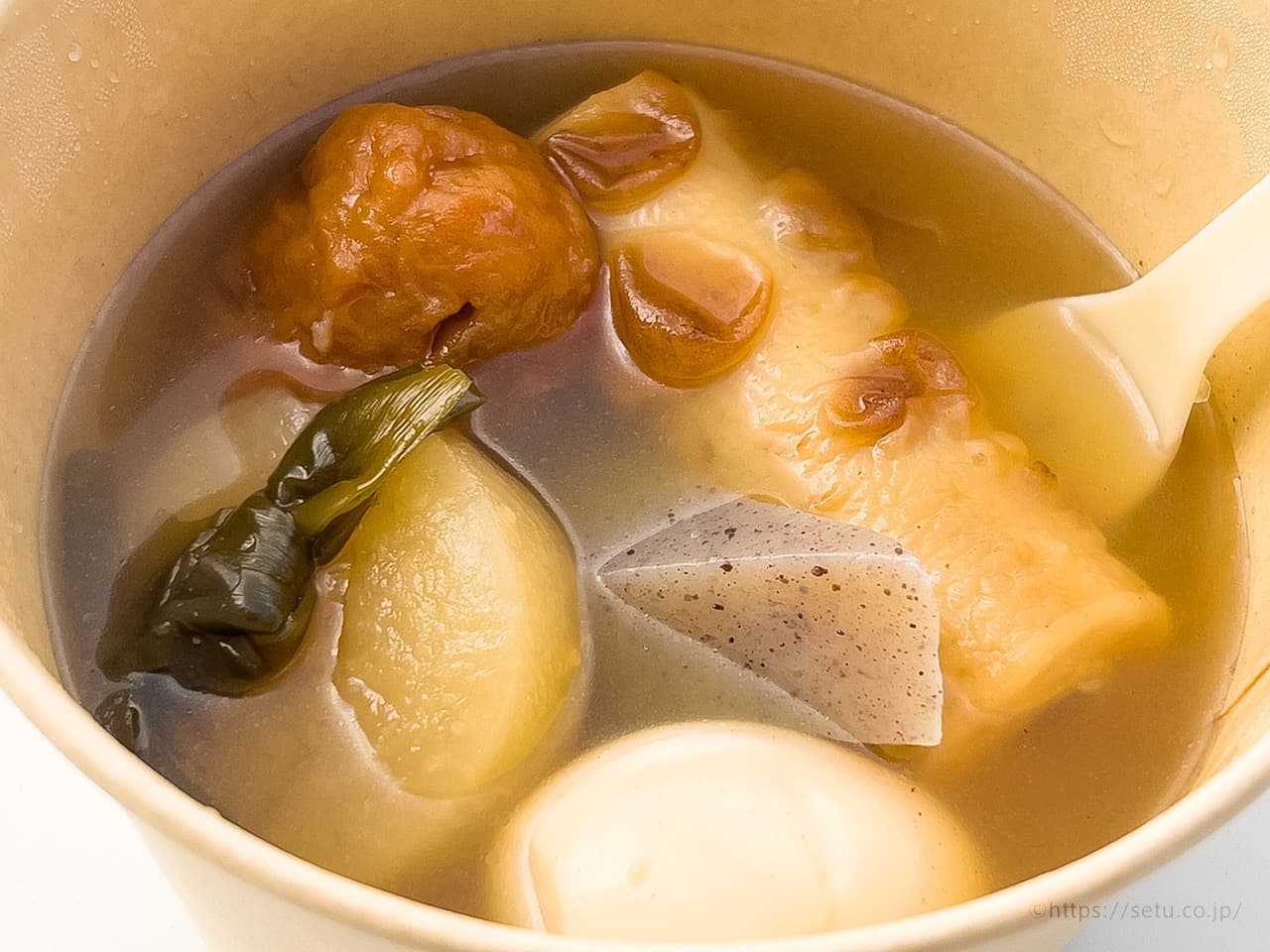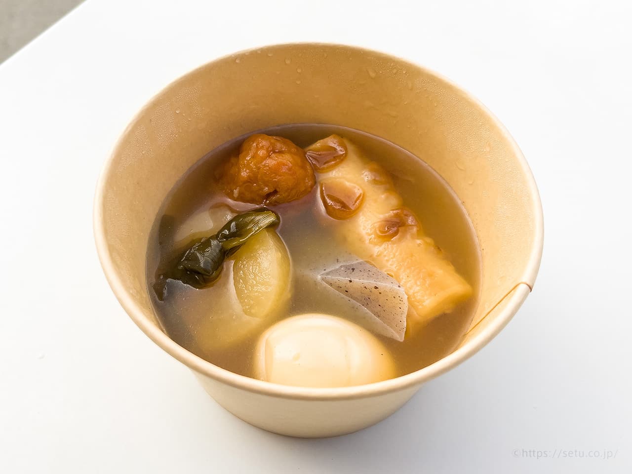 んで肝心の味の方だけど、出汁が甘めで美味しかった!コンビニのおでんのようなしっかりめの味付けなのにファーストフード感がなくて良い塩梅。
