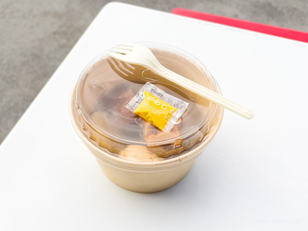 からしとフォーク付きで渡されましたよ!(柚子胡椒派なのでそのまま食べました😂)