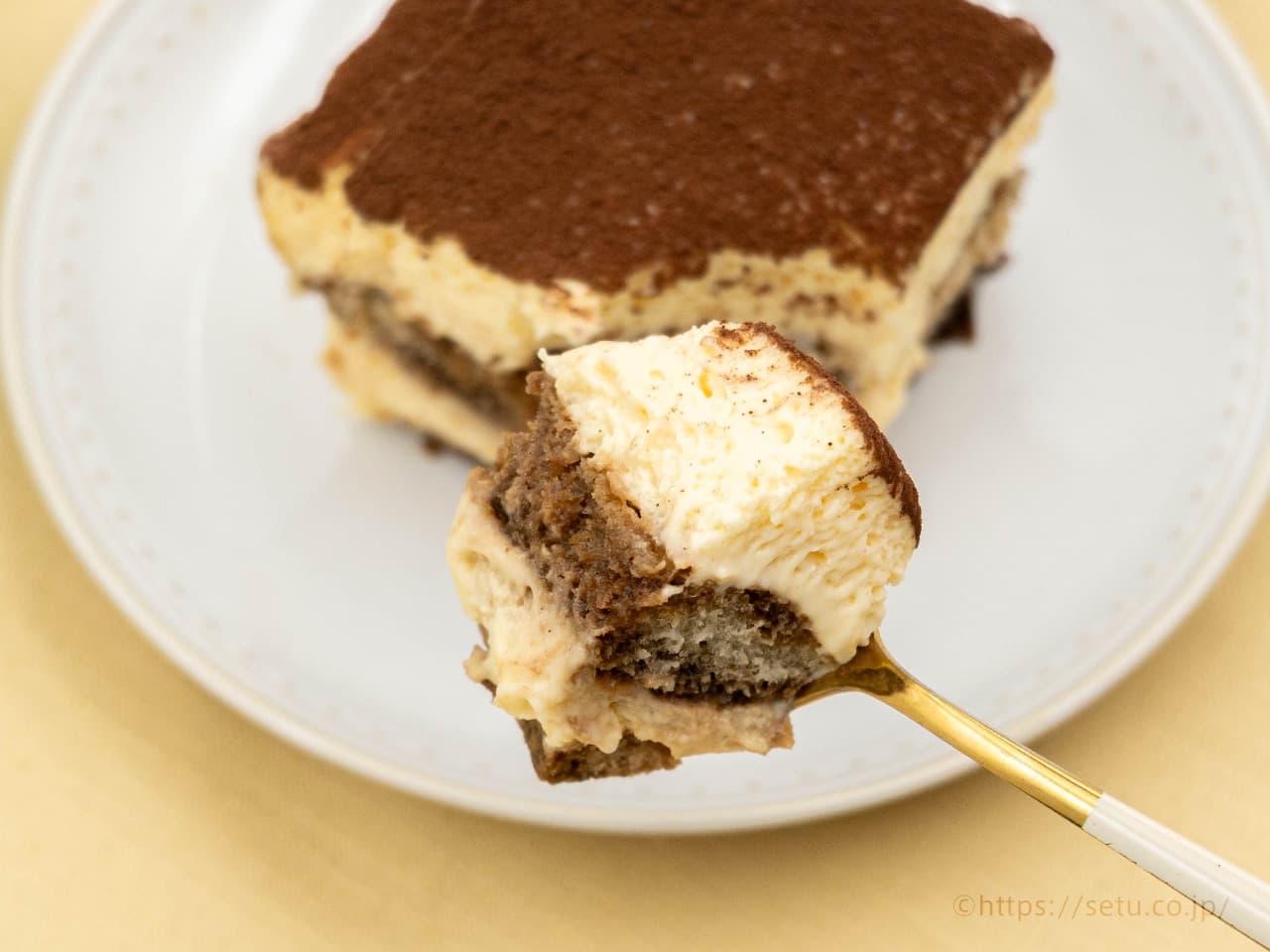 ビスケット部分はコーヒーとクリームの水分を吸ってしっとり。ふわふわと泡のようなマスカルポーネクリームと相性が良く、全体的に味がまとまっています!