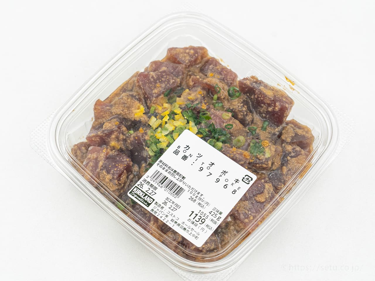 100gあたり268円なので外食でポキ丼を頼むことを考えればかなりお得感があります。買いやすい価格帯で販売されているのもポイント。手軽に楽しみやすいですね~!