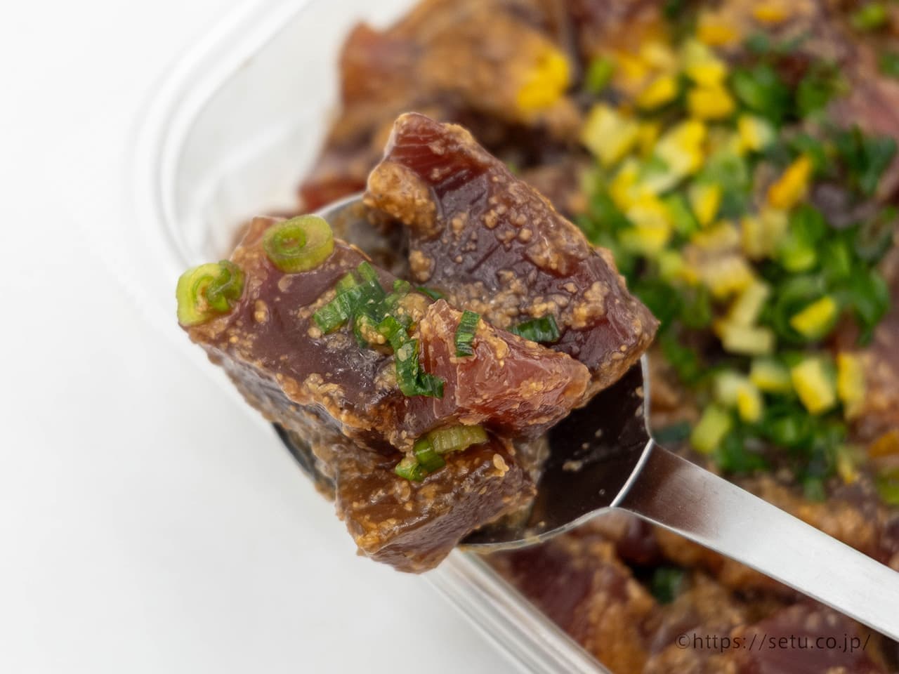 ポキシリーズはごま油が強めのものが多いと思うんですが、今回は控えめ!そのせいか「ポキらしさ」は薄く、一般的な漬けマグロに近い印象でした。