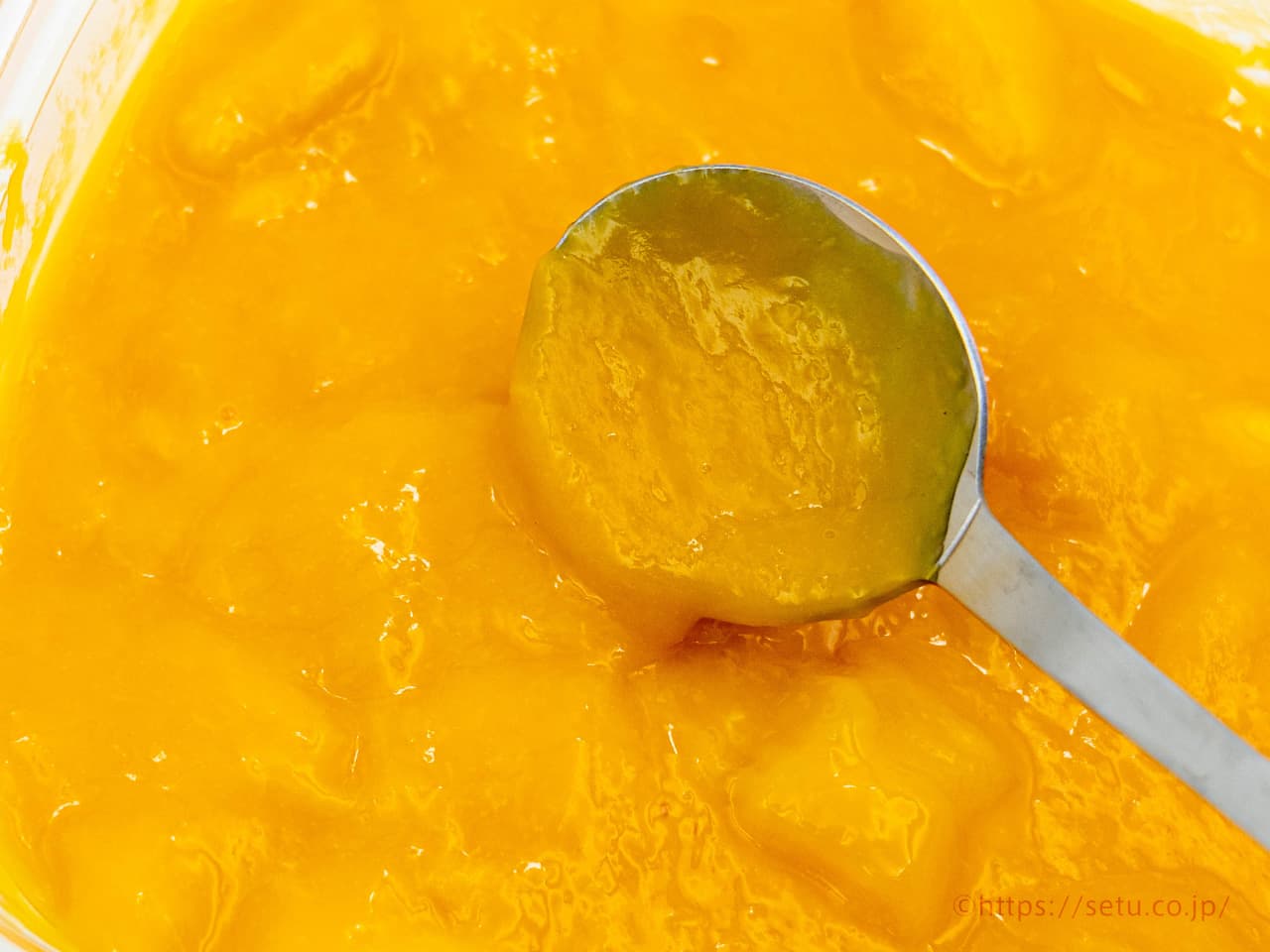 マンゴーソースがびっちり敷き詰められています!ソースはとろみがあり、芳醇なマンゴーの香りがします。