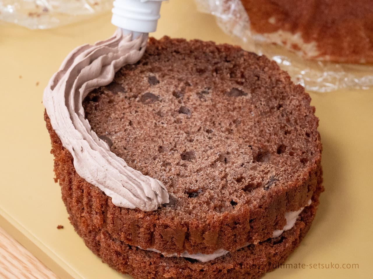 余ったクリームを側面に塗って、包丁でうす~く広げていきます。