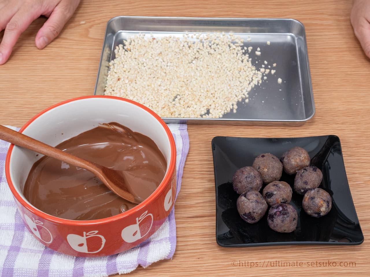 後はマフィン団子にチョコレートを絡めて絡めて…