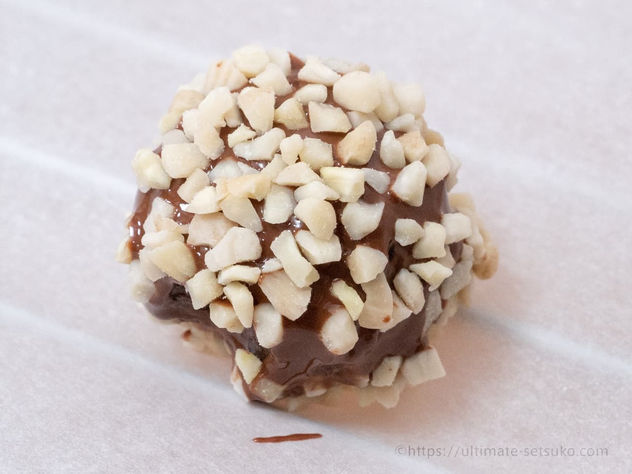コロコロ転がしながらアーモンドダイスをトッピングしていきます。