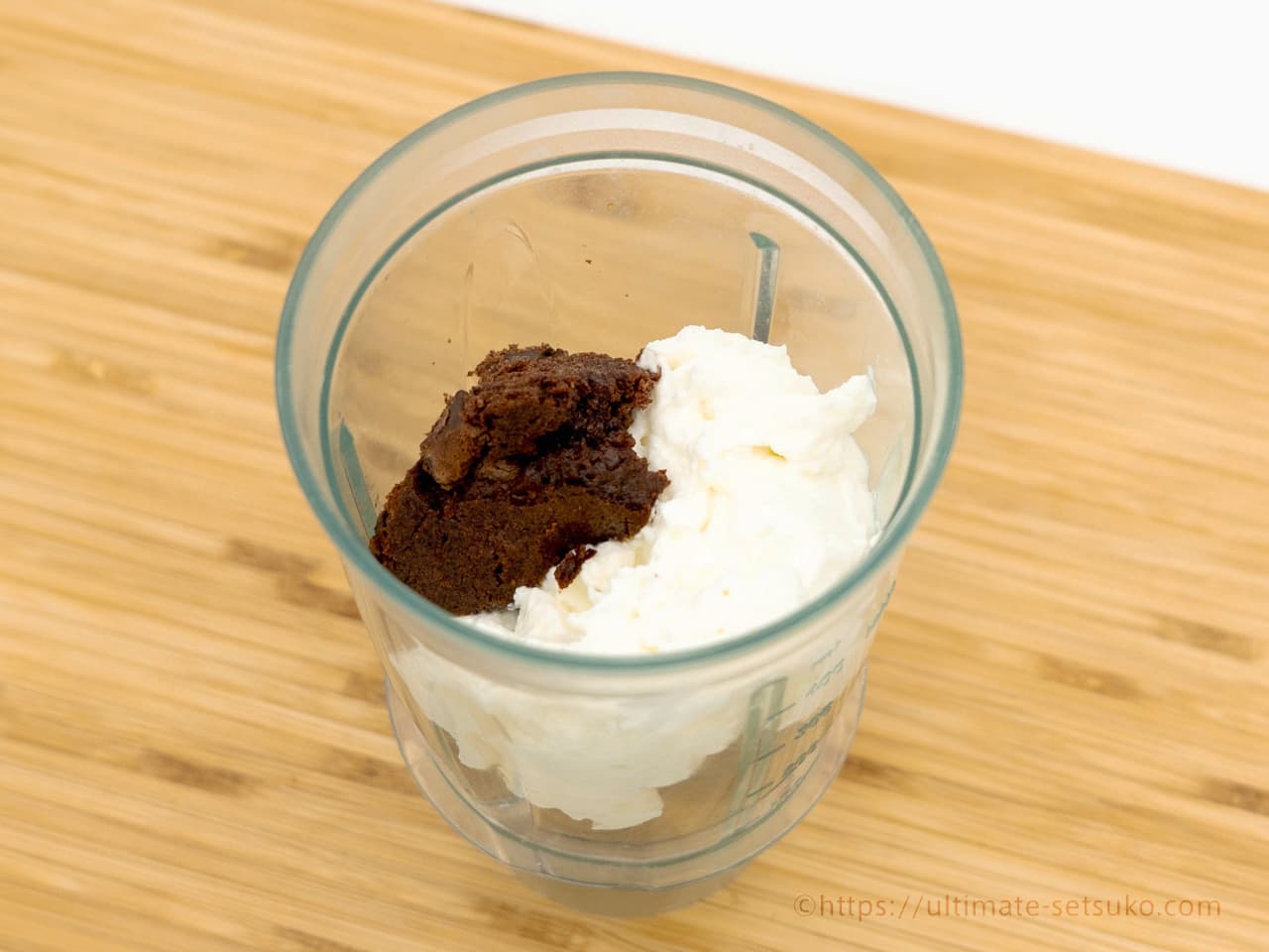 ミキサーにマフィンとヨーグルトを入れて混ぜます。