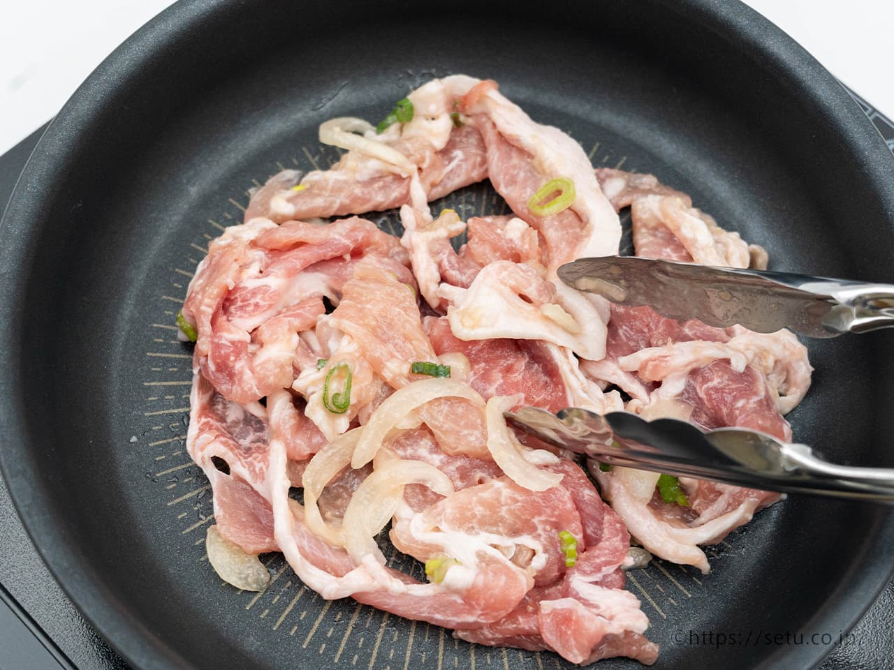 お肉は豚肉で、スライス玉ねぎ入り。トッピングには刻み青葱がのってます。