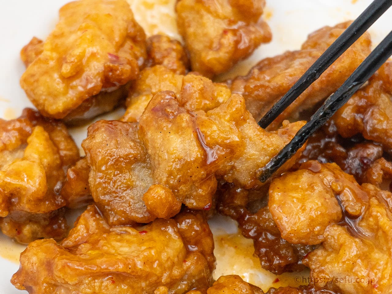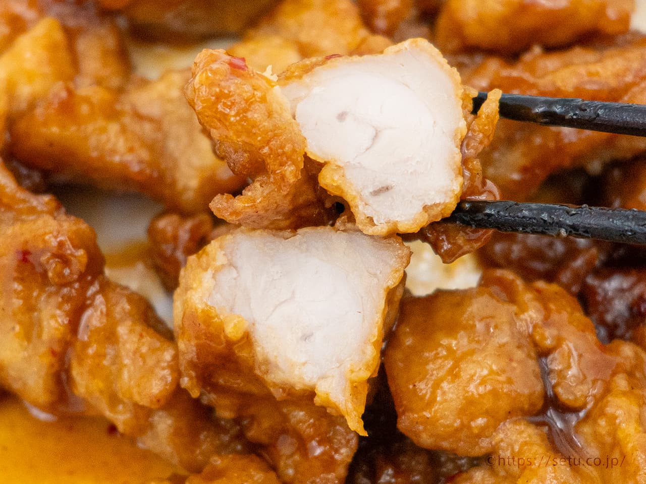 厚い衣がソースとしっかりと絡んでいるので、味が濃厚で満足度は高め。もも肉にしてはさっぱりしてて、ほどよい噛み応えがありました👏