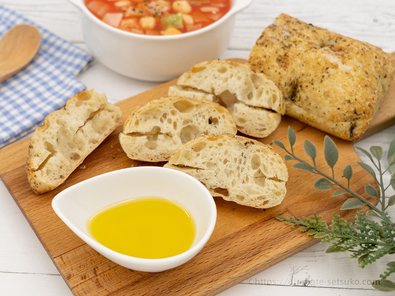 チャバタは、小麦粉、水、塩、酵母、オリーブオイルから作られたイタリア発祥の白パンで、バターやマーガリンを使わないので、普通のパンよりヘルシー!