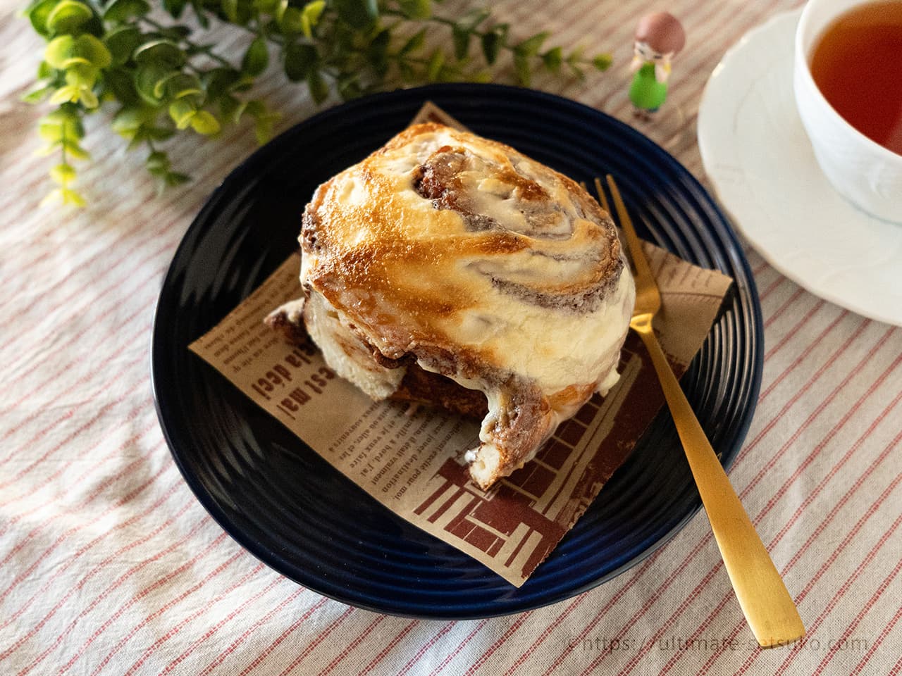 すっごく甘いけど、シナモンがしっかり効いてて本格派です。ふんわりとした生地にアイシングが染み込んでました。