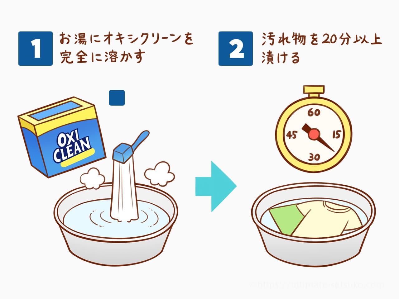 効果的に汚れを落とすポイントは「最適な温度(40~60℃)」と「漬ける時間(20分以上)」この2つを守るだけ。